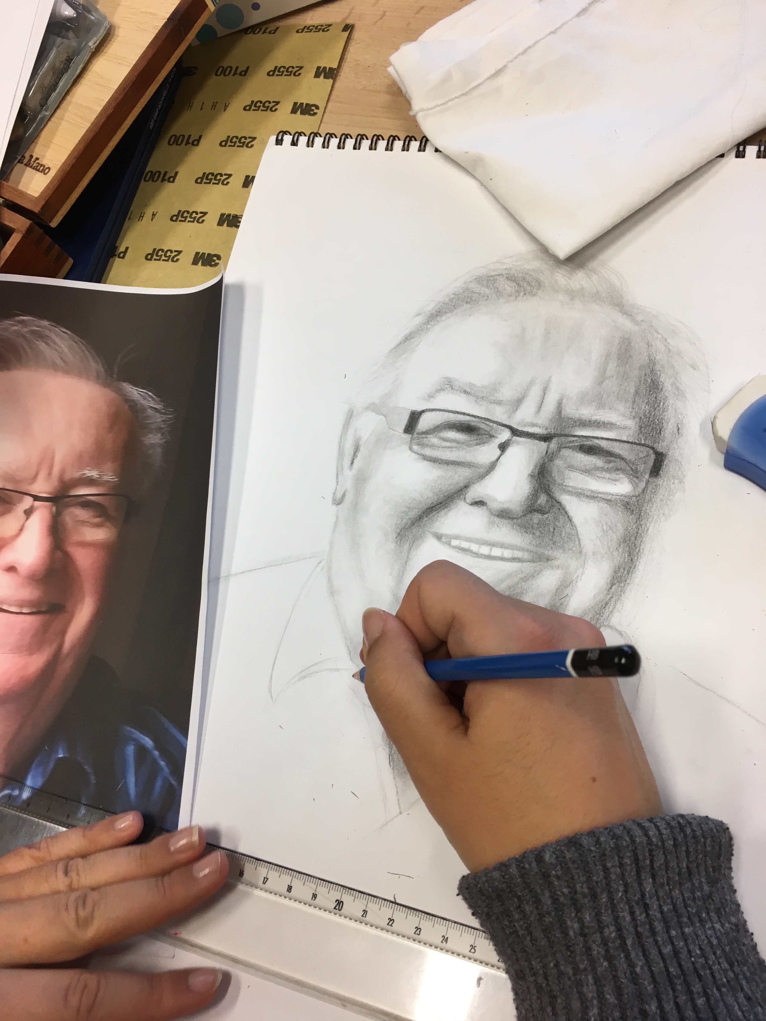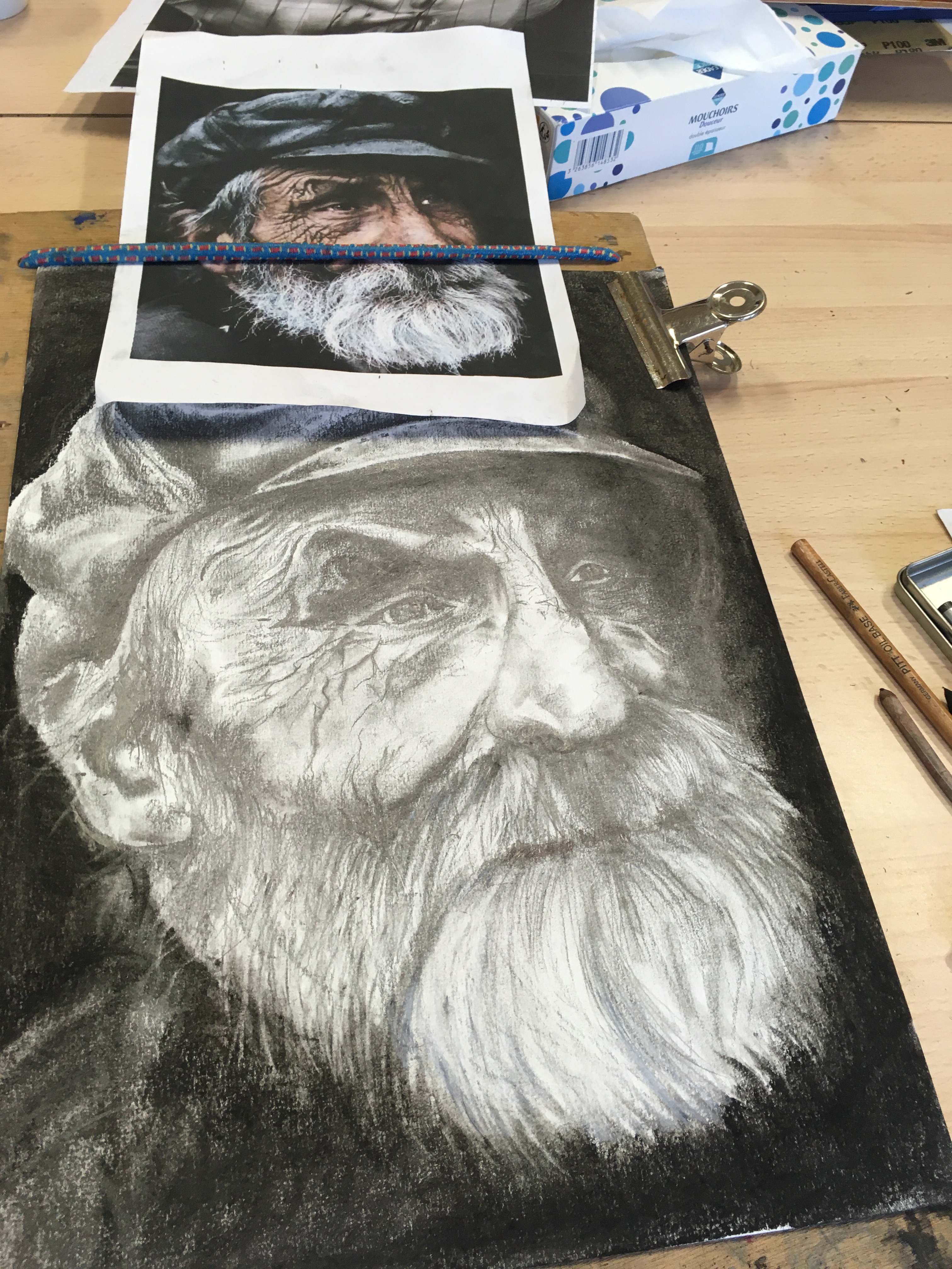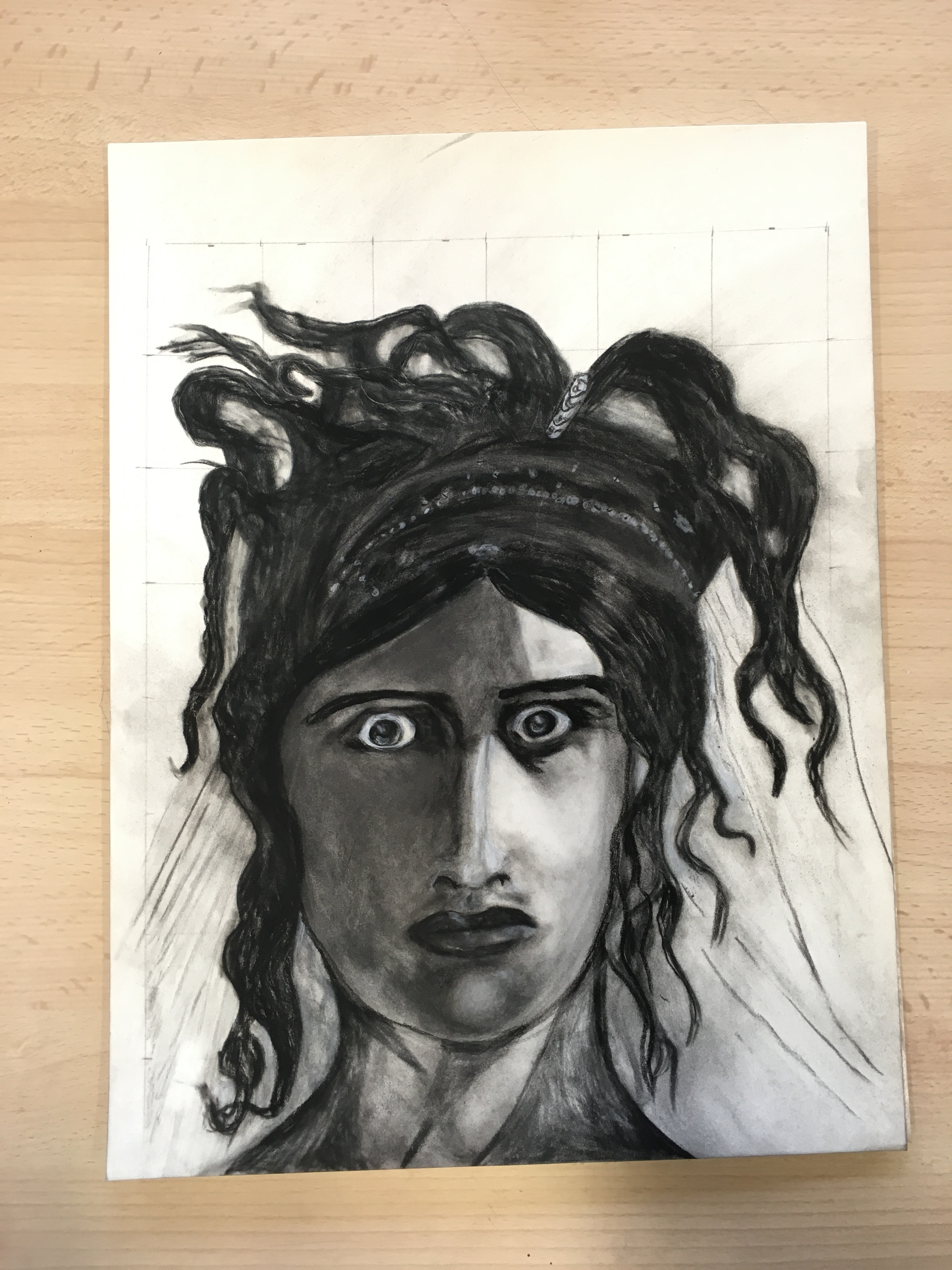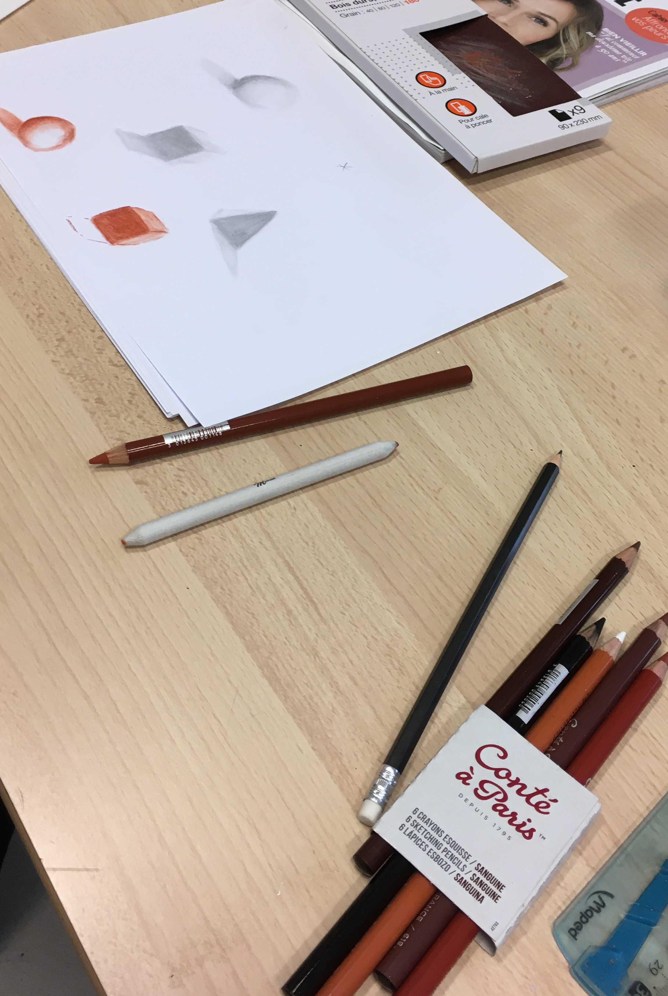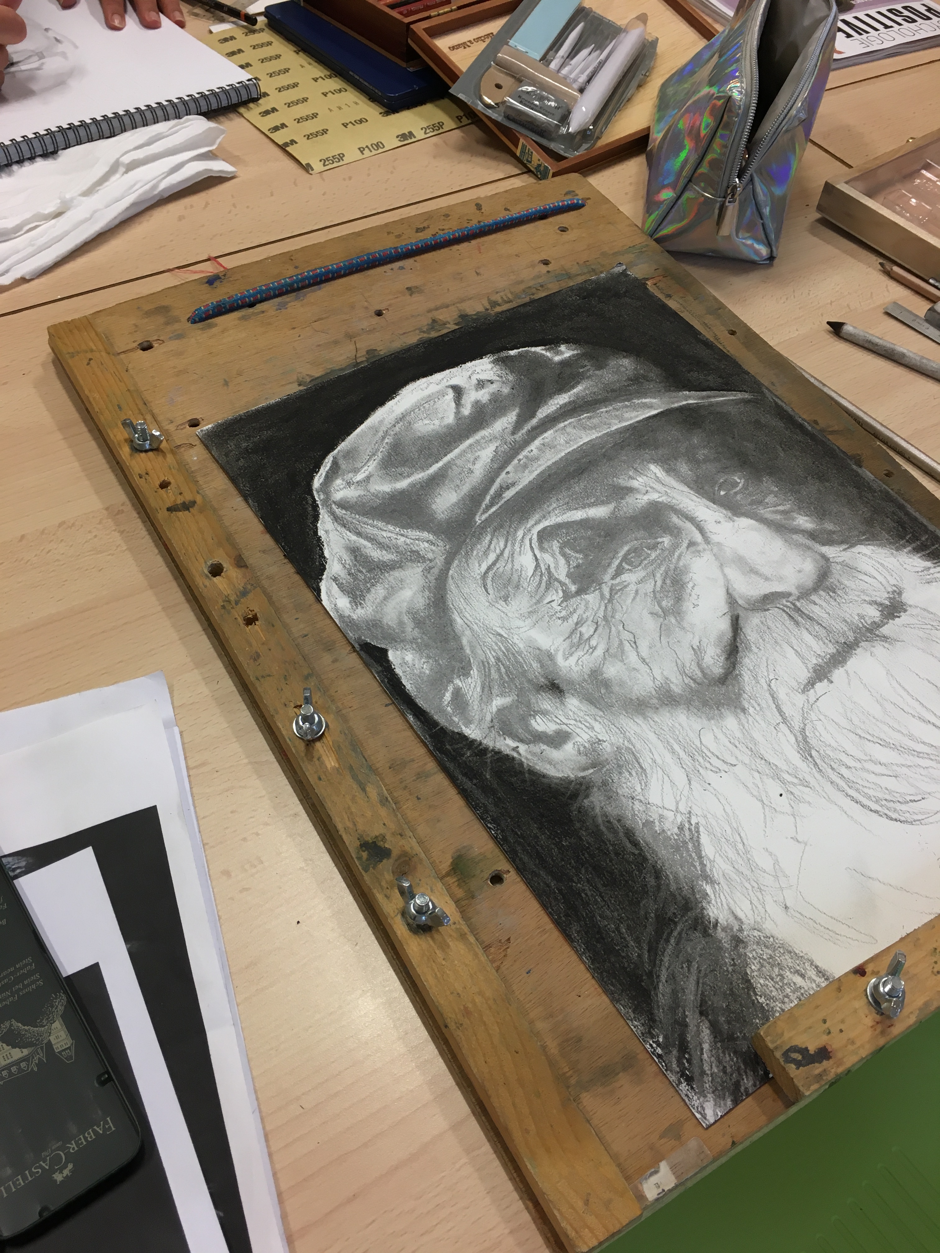 Tout d’abord et pour facilité le travail (le temps nous ai compté !) quadrillage des supports de travail… et aussi quelques photocopies de noir et blanc des visages !