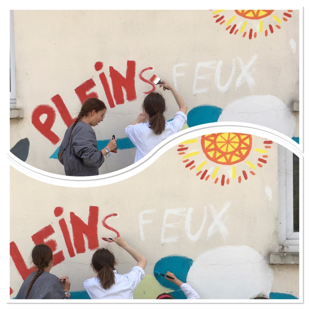 Dans le cadre des ateliers jeunes et ados du centre culturel Lucie Aubrac, les services techniques de la ville de trignac Et en accord avec le festival “pleins feux 2024”, nous ont proposé d’investir un mur de l’école maternelle du centre.