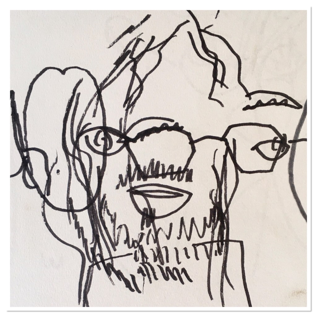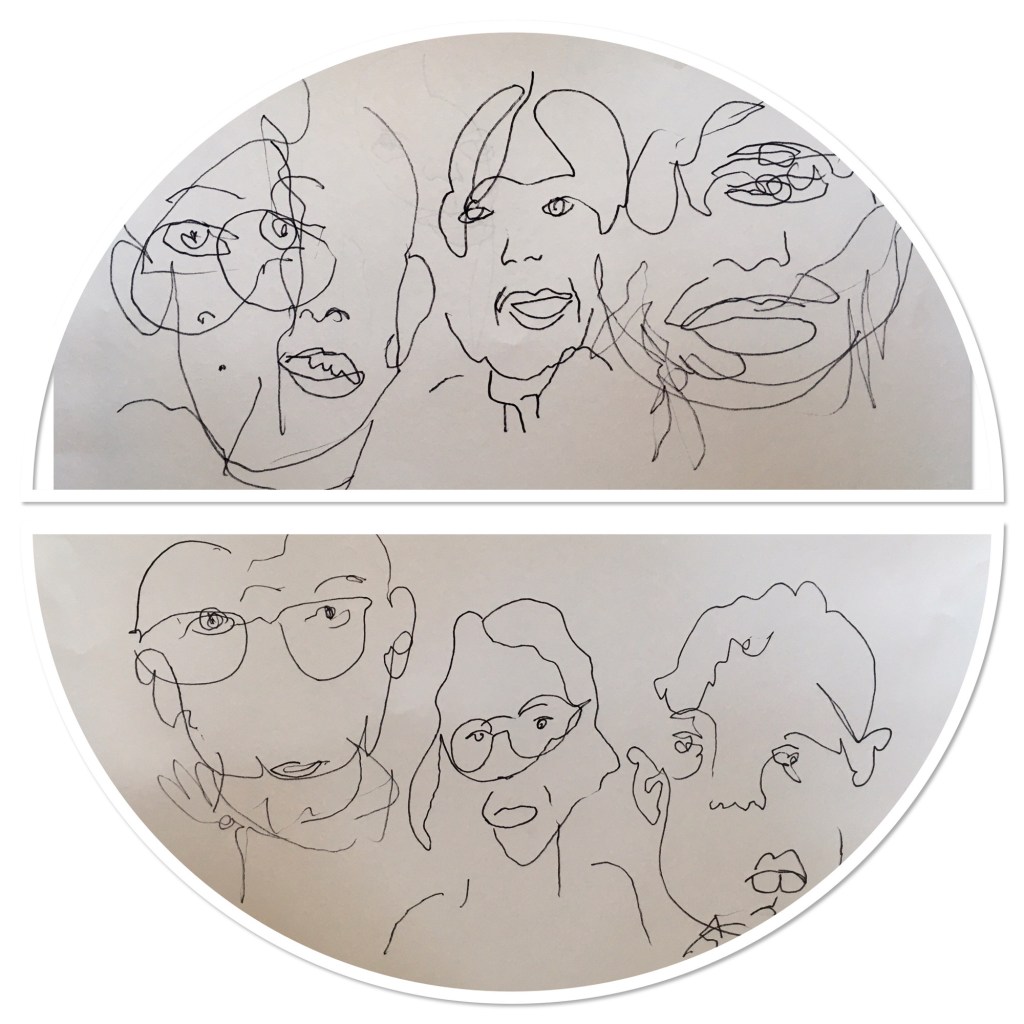 Nous avons décroché l’exposition de fin d’année et pour fêter cette fin d’année nous nous sommes dessinés à l’aveugle dont voici quelques petites