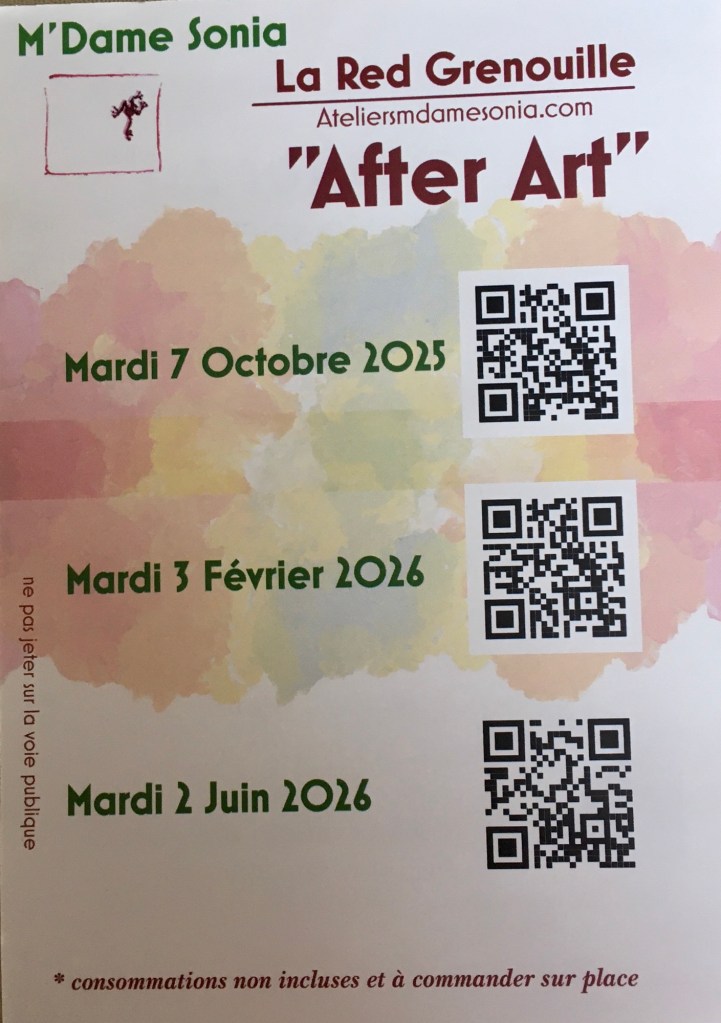 Adultes +16, Évènements, Stages After art 25/26 Date: 8 juillet 2025Author: mdamesonia 0 Commentaires Partager : Partager sur Facebook(ouvre dans une nouvelle fenêtre) Facebook J’aime chargement…
